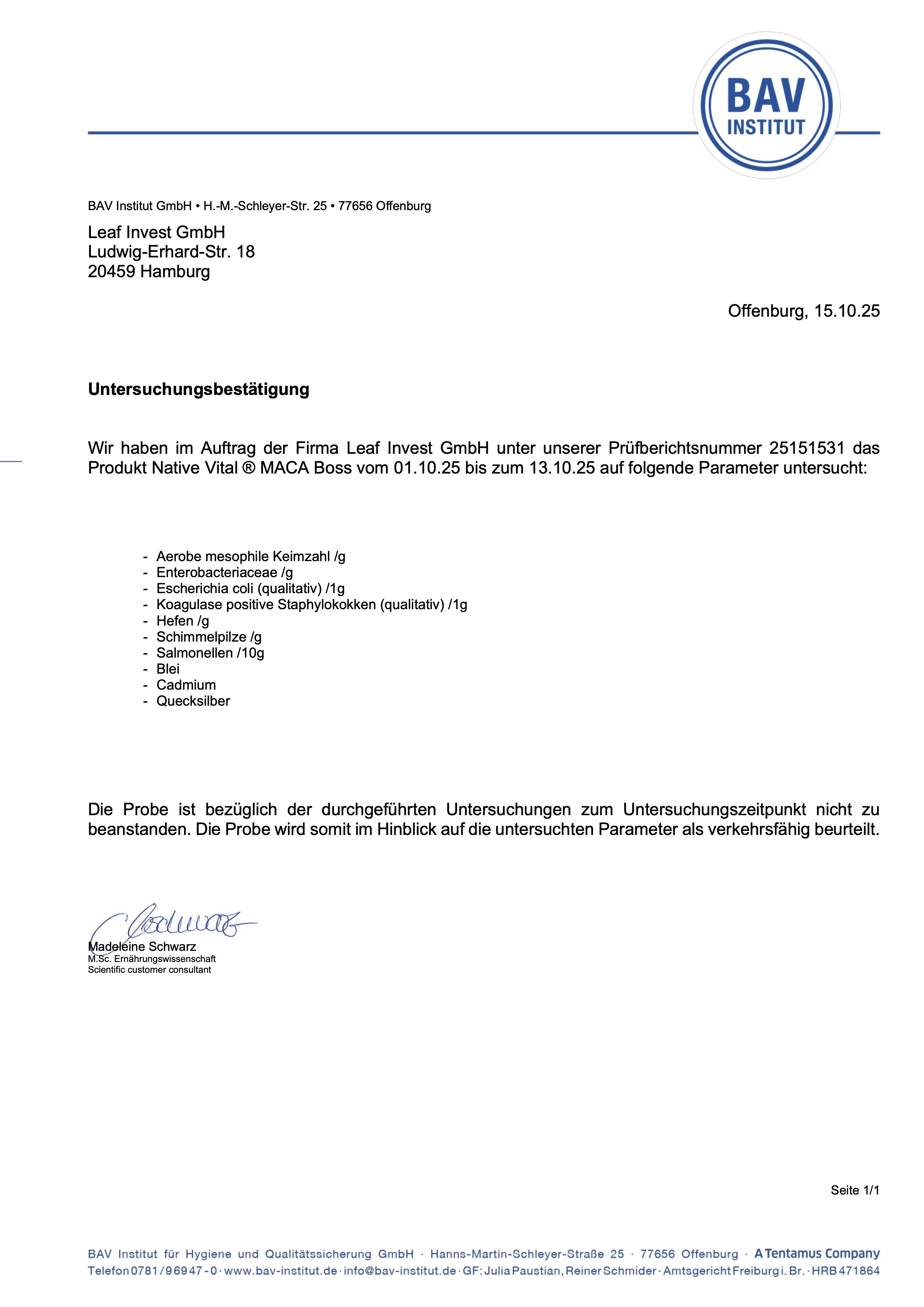 • Hergestellt in Deutschland: Unsere Produktion erfolgt nach strengen deutschen Qualitätsstandards. Unsere Produkte werden in unabhängigen deutschen Laboren geprüft, u. a. auf Schwermetalle (z. B. Quecksilber, Blei), Schimmel und Mikroorganismen wie Salmonellen.